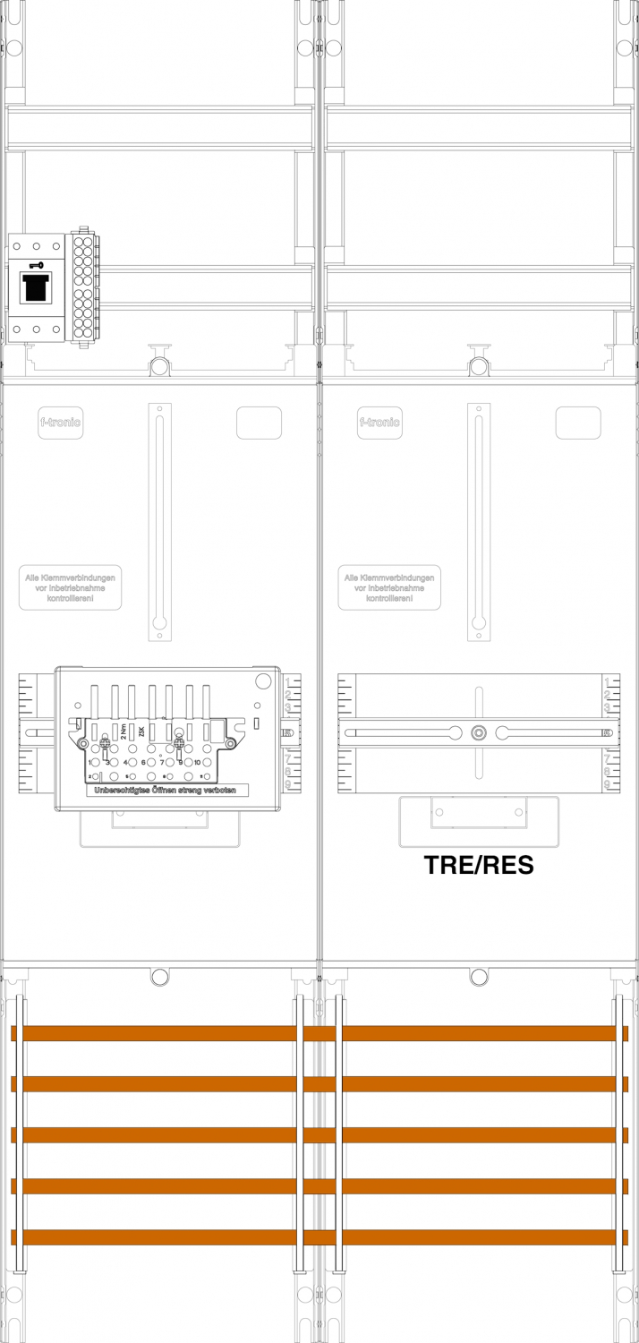 1St. F-Tronic Z1BR1B-ZSK-HSS Zählerfeld Z1BR1B-ZSK-HSS, 2-feldrig, H=1050mm, 1-3.HZ, 1 ZSK-Set, 1 HSS, 1 TRE 7141552