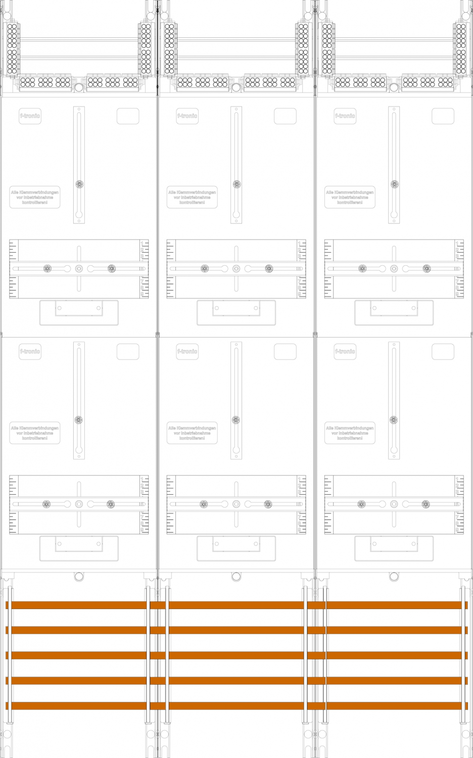 Zählerfeld 3-feldrig, 6-Zählerplätze 3.HZ, Höhe 1200mm, Breite 750mm, Sammelschienensystem 5-polig