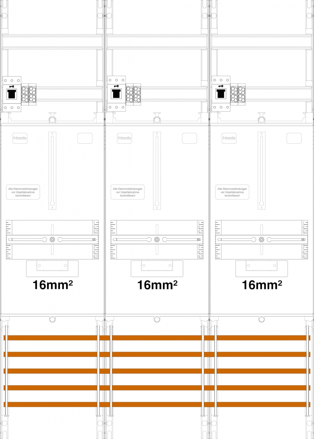 1St. F-Tronic Z31B-16-HSS Zählerfeld Z31B-16-HSS, 3-feldrig, H=1050mm, 3-3.HZ, 16mm², 3 HSS 7141410