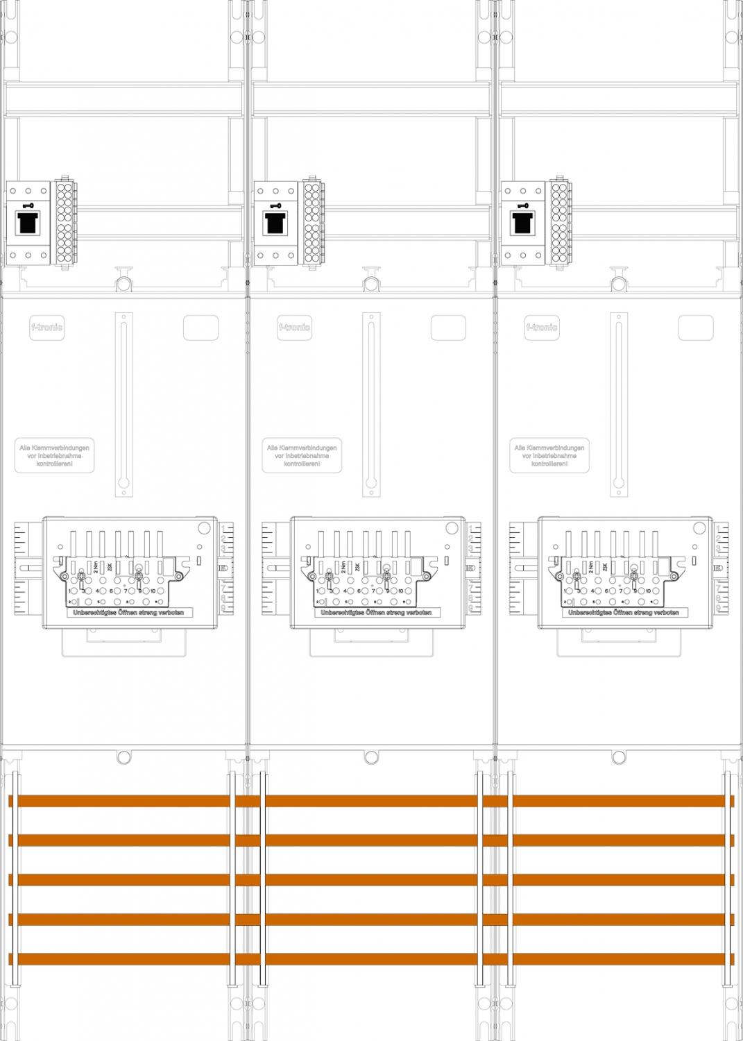1St. F-Tronic Z31B-ZSK-HSS Zählerfeld Z31B-ZSK-HSS, 3-feldrig, H=1050mm, 3-3.HZ, 3 ZSK-Set, 3 HSS 7141555