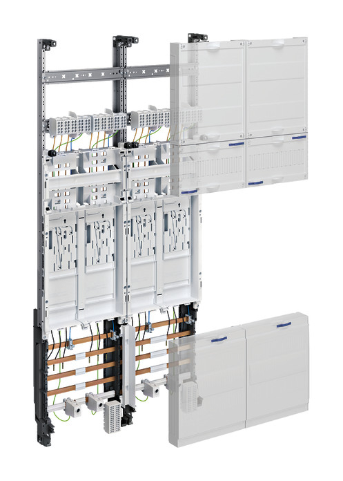 Komplettfeld,univers Z,4ZP,BKE-I,2-feldig,Steuerklemme 7-pol.,HLAK 5-pol. Komplettfeld / Einbausatz univers Z, für eHZ zum Aufbau von Zählerplätzen gemäß Normenreihe DIN 43870 - Schnellmontage im Schrank durch Rast-System bestückt und verdrahtet nach VNB TAB- Bestimmungen - für eHZ- Zählerplätze nach DIN VDE V 603-1 und DIN V VDE V 0603-102 - Maßnorm nach DIN 43 870-1 bis 3, E DIN 43870-1-A1 bis 3-A1 - oberer Anschlussraum: Höhe: 150 mm, mit einer Hutschiene,1-reihig Höhe: 300 mm, mit zwei Hutschienen 2-reihig bestückt mit: Hauptleitungsabzweigklemmen, 3-, 4- oder 5-polig, fingersicher nach BGVA3 oder bestückt mit: __________ __________ ___________ - Zählerfelder mit integrierter Befestigungs- und Kontaktiereinrichtung (BKE-I) für eHZ, zum Einbau gemäß DIN 43870-1/A1 eHZ-Zählertragplatte mit integriertem Zusatzraum (für Kommunikations- und Steuergeräte) Zusatzraum: - 1-feldig - Höhe: 150 mm - mit Abdeckung geschlossen, Vorprägungen für 12 PLE, plombierbar - mit Hutschiene 12 PLE - Öffnungen für Leitungsführung - unterer Anschlussraum: Höhe 300 mm bestückt mit: Hutschiene oder CU Sammelschienen, 12 x 5 mm, 4-polig / 5-polig oder bestückt mit&nbsp &nbsp &nbsp &nbsp ____________ _________ ___________